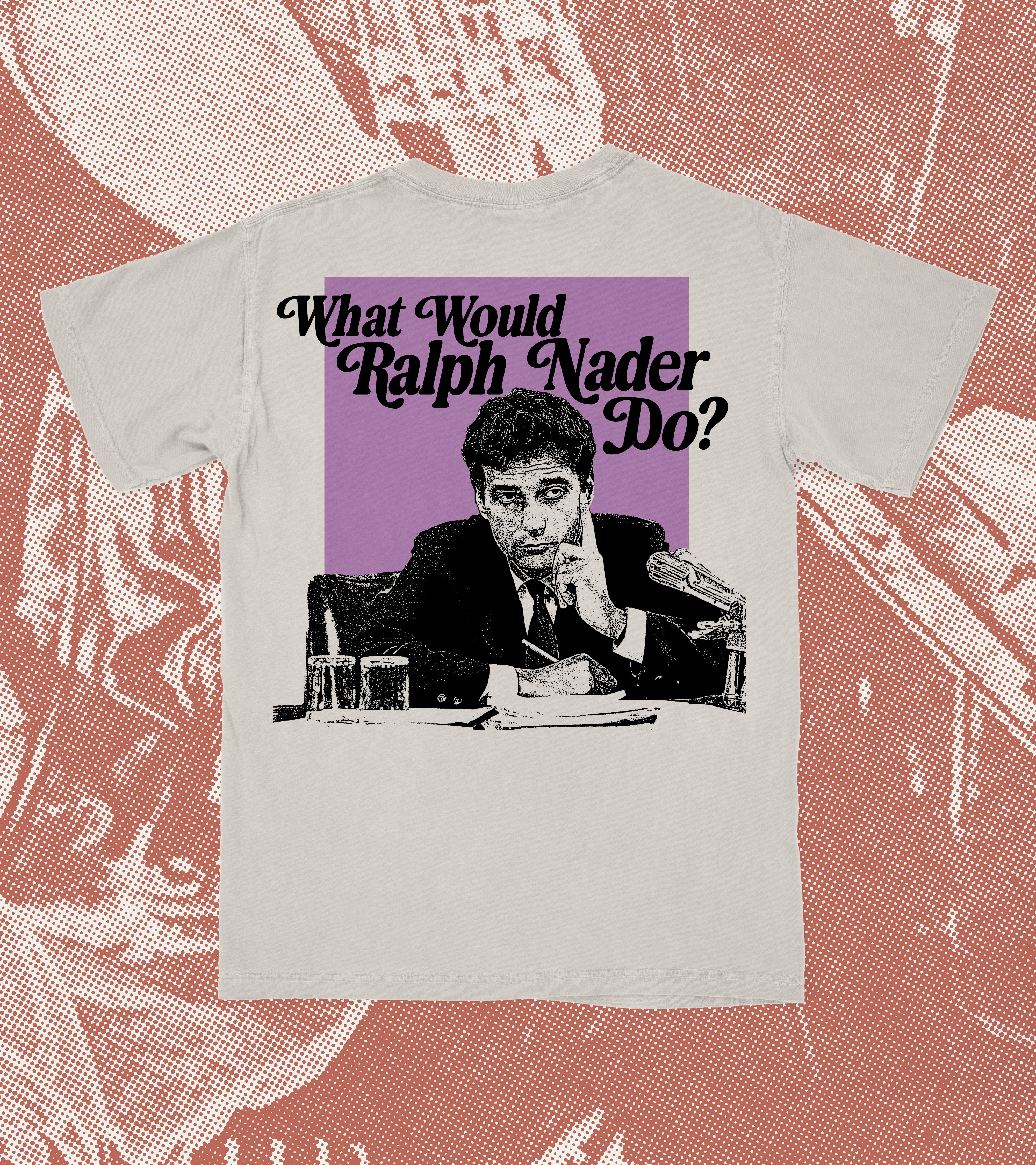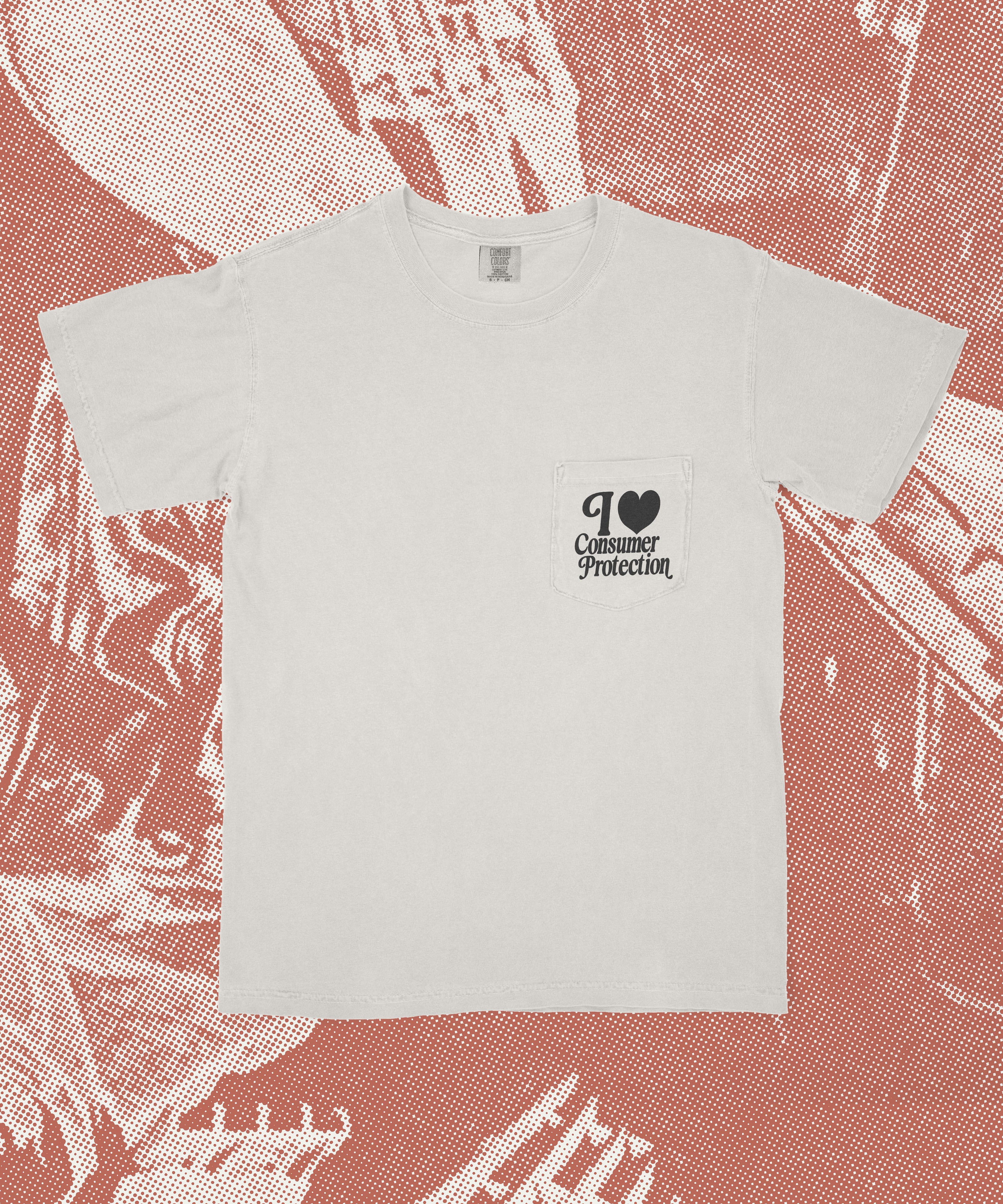 Printed on Comfort Colors pocket tees. Choose with either Ralph Nader or Lina Khan back print, or for the more subtle among you, a pocket print only.