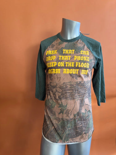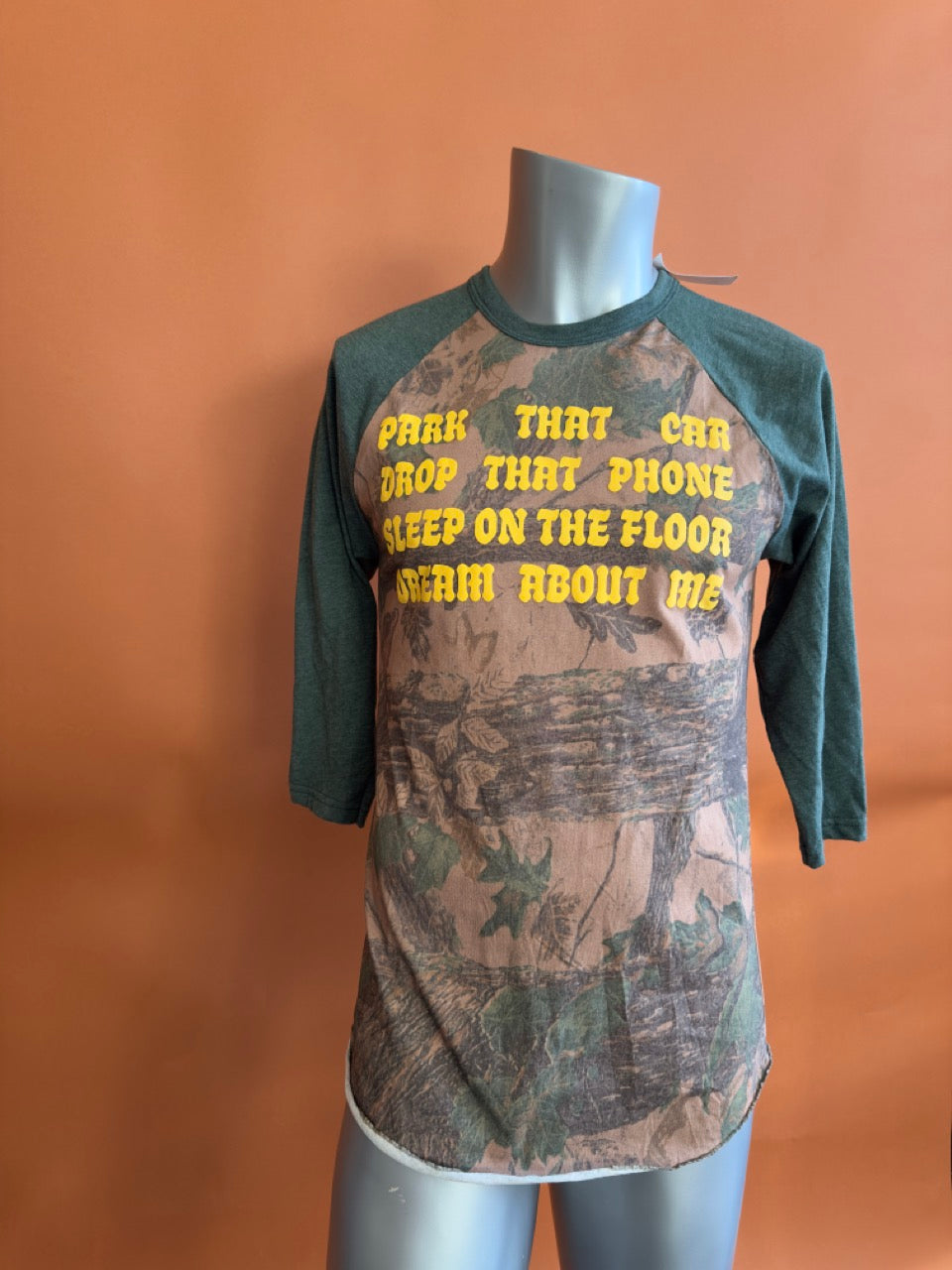 Two styles available, brown camo with green sleeves (photo 1) and light camo with heather gray sleeves (photo 2)