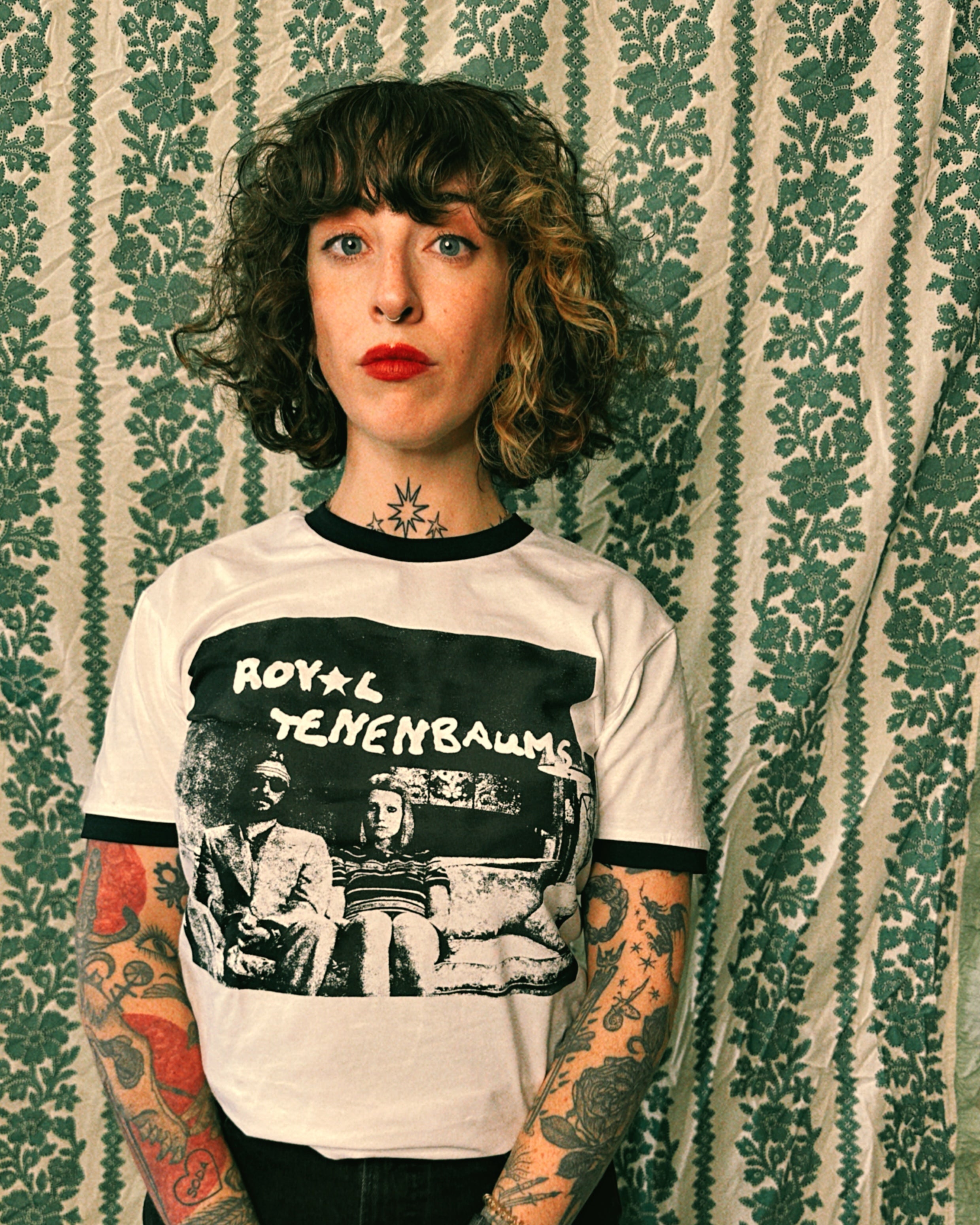 Hand printed with navy ink on 100% cotton navy/white ringer tees.